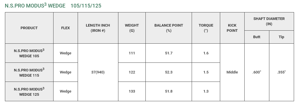 Available in three optimized weights, N.S. PRO Modus 3 Wedge Shafts let players match their wedge shafts to the feel and performance of their irons without compromise.